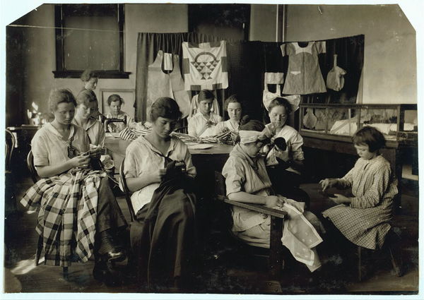 Sewing and darning. Training School for Deaf Mutes. See 4843-4851. Location: Sulphur, Oklahoma / Lewis W. Hine.