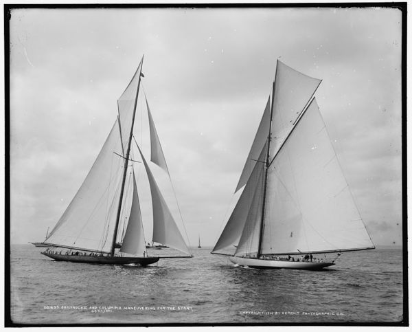 Columbia and Shamrock II maneuvering for the start