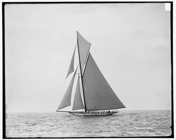 Reliance and Shamrock III tacking just after start, Aug. 27, 1903