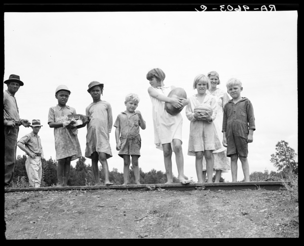 Sharecroppers' families gathering needs for their 4th of July celebration, whites and blacks together. Hill House, Mississippi