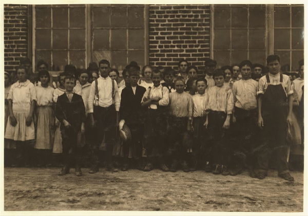 Shaw Cotton Mills. Overseer grouped all the workers, and several of them are surely under 13, and several began work under 13 last year. Location: Weldon, North Carolina.