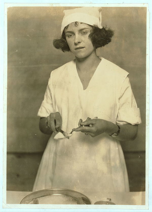Showing how essential accurate measurements are. A "Demonstration team" composed of three prize-winning Cabell County girls. See Photo No. 48. Location: Charleston, West Virginia / Photo by Lewis W. Hine.