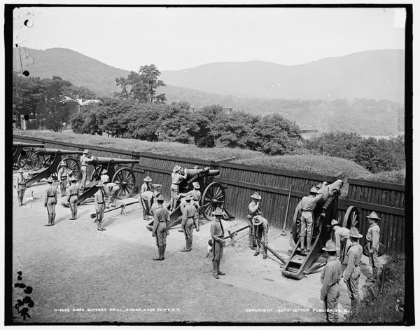 Siege battery drill, firing, United States Military Academy, West Point, N.Y.