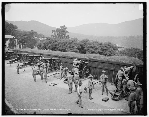 Siege battery drill, fixing sights, West Point, N.Y.