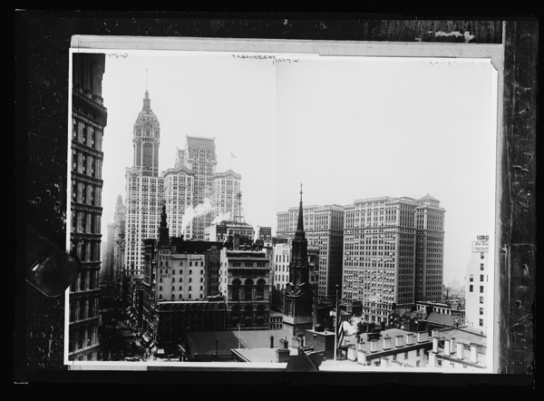 Singer Building, City Investing Building, and Hudson Terminal Building with Trinity Church steeple, New York, N.Y.