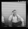 Bindle stiff, used to be logger. Side of Pastime Cafe. Idle three weeks before the opening of the Klamath Basin potato harvest. California, Siskiyou County, Tulelake. See general caption number 43