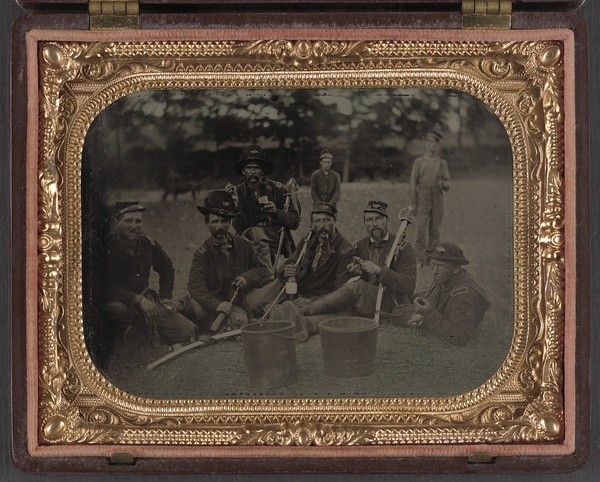 Six unidentified soldiers in 45th Ohio Infantry Regiment officers' uniforms with sabers