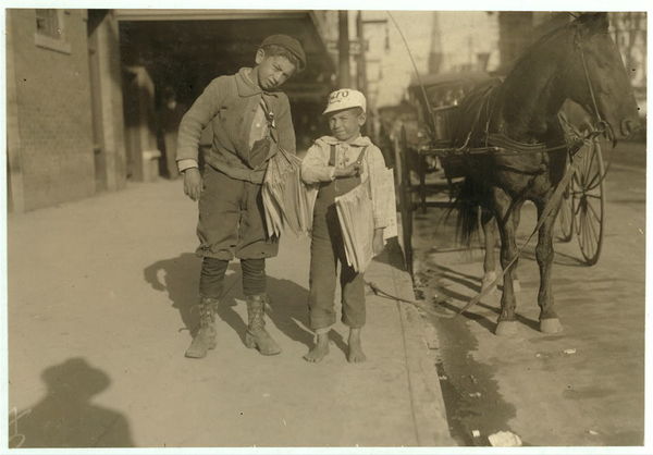 Two six-year old newsboys. Odell McDuffy, Sam Stillman, Dallas. There are many other of six and seven years selling here. Location: Dallas, Texas.