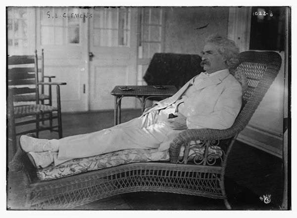 S.L. Clemens reclining on porch chair