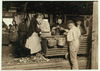 Shucking oysters in the Alabama Canning Company (Dunbar Lopez, Dukate Co.) Small boy on left end is Mike Murphy, ten years old, and from Baltimore. Location: Bayou La Batre, Alabama.