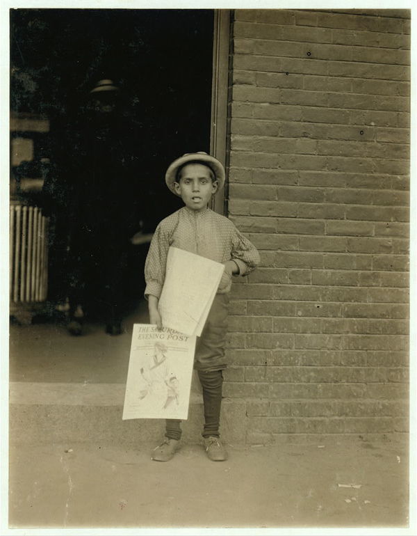 Small newsie at depot, Burlington, Vt. Location: Burlington, Vermont.