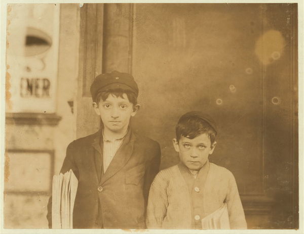 Smallest boy, Max Case, 19 S. 16th St. 8 years old. Makes from 20 cents a day up. Made $3 at Christmas time. Large boy Jo Bruzen 2026 Market St., 9 years. Location: St. Louis, Missouri.