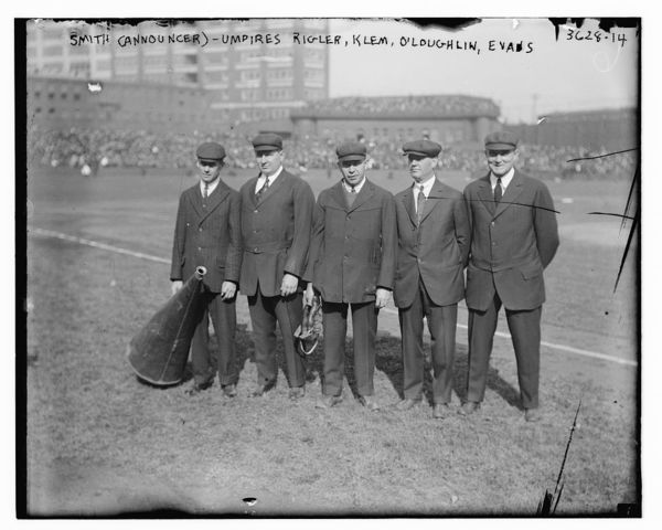 Smith (announcer) & Umpires Charles "Cy" Rigler, Bill Klem, Francis "Silk" O'Laughlin, Billy Evans, 1915 World Series (baseball)