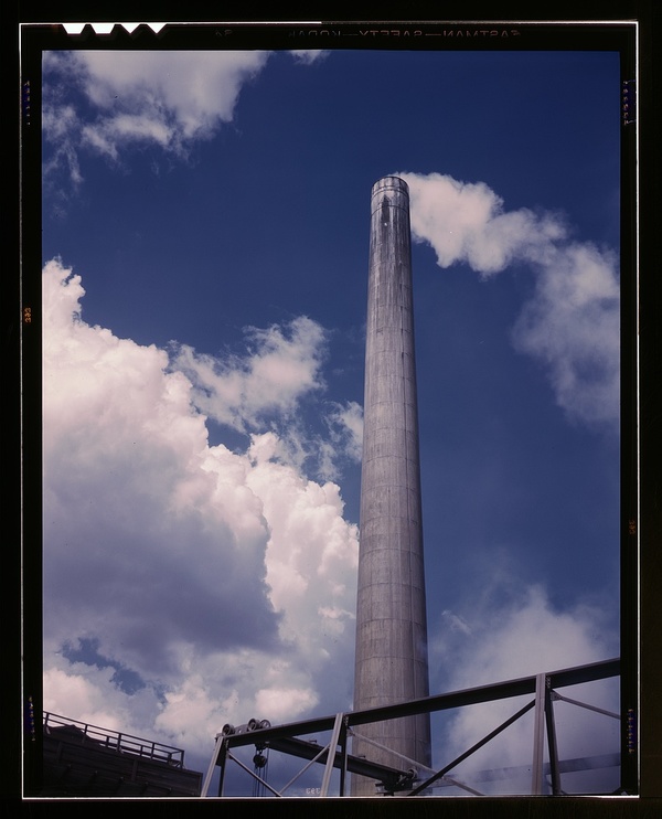 Smoke stack of TVA chemical plant where elemental phosphorus is made, vicinity of Muscle Shoals, Alabama
