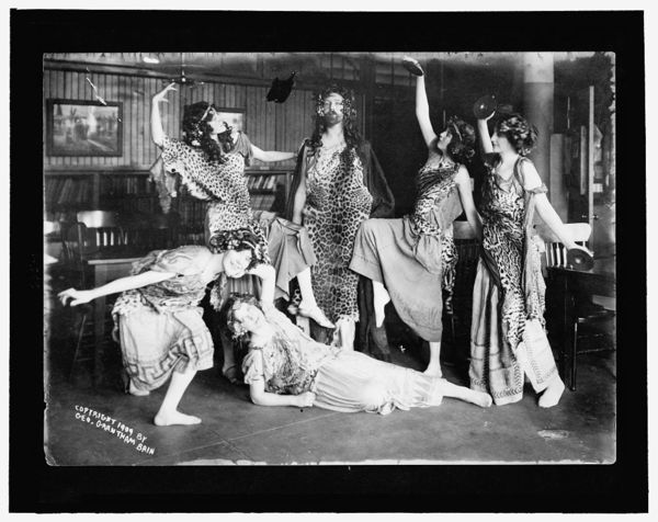 Society women in Greek pageant: Grace Walters, Mrs. Arthur Scott Burden, Mr. A. Herter (artists who designed pageant), Mrs. J.B. Eustis, Martha White and Miss M.R. White