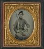Felix Thompson of Company H, 1st Missouri Cavalry Regiment with pistols and sabre