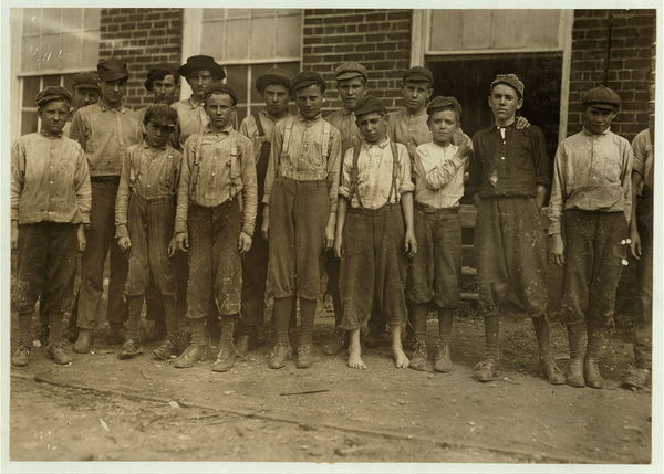 Some of the doffers at the Salisbury (N.C.) Cotton Mill, October 18th, 1912. The average age of the children here is rather high, but there are some youngsters. Location: Salisbury, North Carolina.
