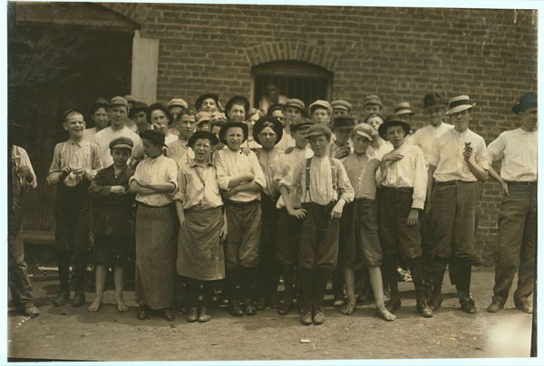 Some of the young girls who roll cigarettes in the Danville (Va.) Cigarette Factory. I could not induce the very smallest ones to get into the photos. See other photos taken at noon and in the morning. Location: Danville, Virginia.