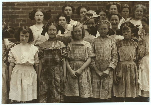 Some of the young girls who roll cigarettes in the Danville (Va.) Cigarette Factory. I could not induce the very smallest ones to get into the photos. See other photos taken at noon and in the morning. Location: Danville, Virginia.