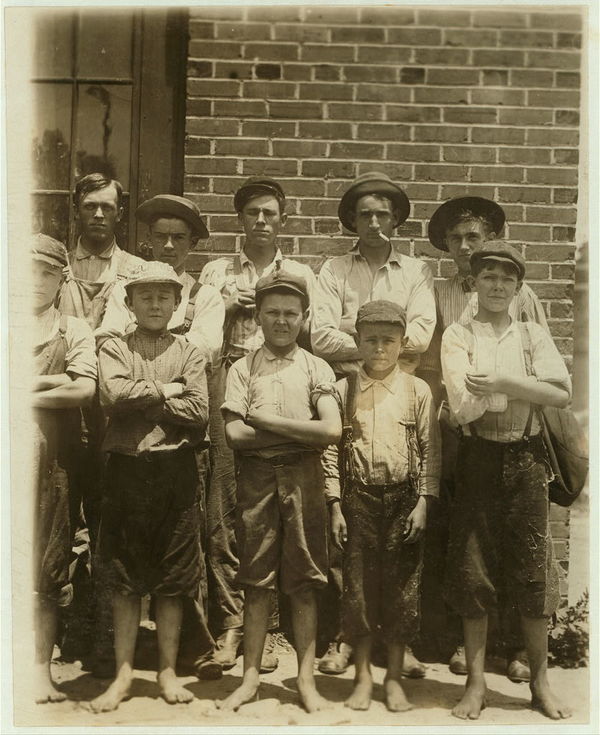 Some of the youngsters working in Belton Mfg. Co., Belton, S.C. Two of the youngest and J. Henderson. Kelly Street. Percy Morrison, Eugene Simper. Location: Belton, South Carolina.