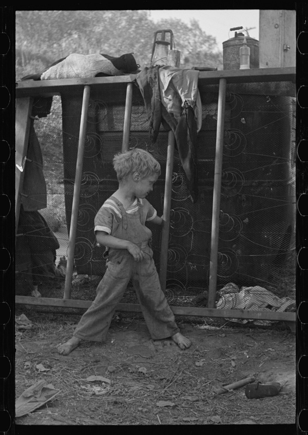 Son of destitute migrant, American River camp, near Sacremento, California. The boy has dysentery. See mount 9921-C