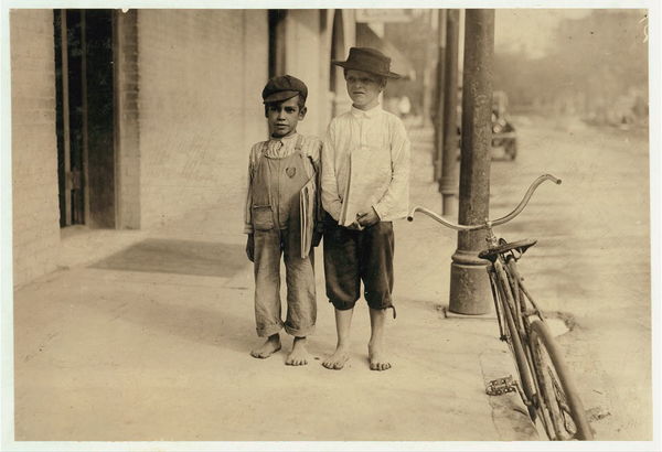 Sonny and Pete newsboys. One is six years old. They began at 6:00 A.M. Location: San Antonio, Texas.