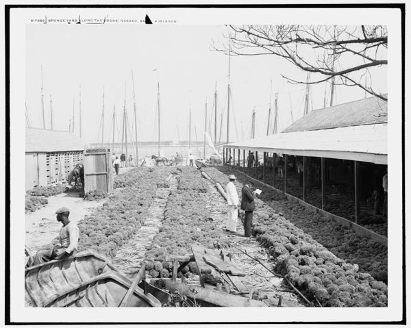 Sponge yard along the docks, Nassau, Bahama Islands