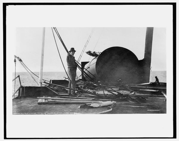 S.S. M.W. i.e. Howard M. Hanna, top of after cabin, after storm