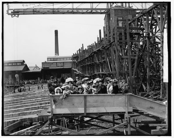 Three-story house with side porch and automobile in front, possibly Detroit, Michigan