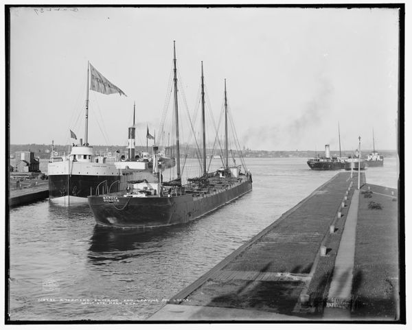 Steamers entering and leaving Poe Locks, Sault Ste. Marie, Mich.
