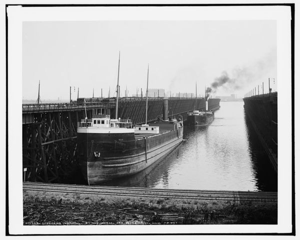 Steamers loading at the Mesabi i.e. Missabe ore docks, Duluth, Minn.