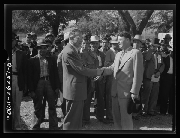 Stockton (vicinity), California. Mexican agricultural laborers arriving by trian to help in the harvesting of beets