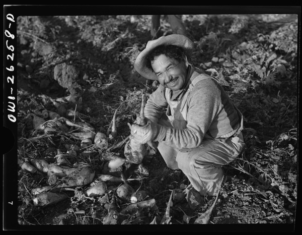 Stockton (vicinity), California. Mexican agricultural laborers throwing sugar beets into a truck
