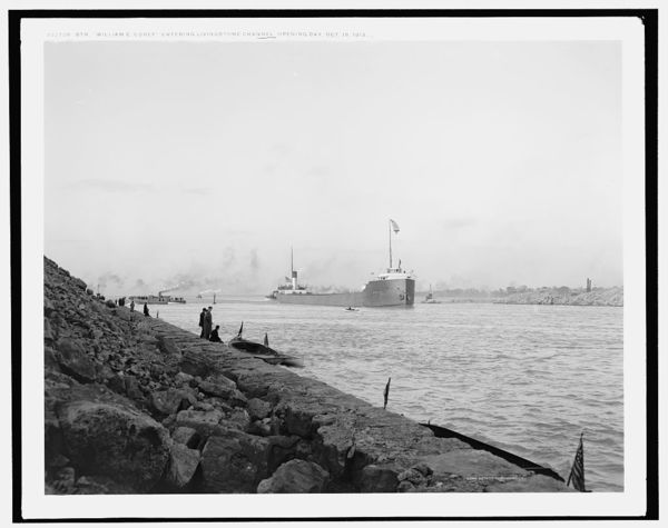 Str. William E. Corey entering Livingstone Channel opening day, Oct. 19, 1912