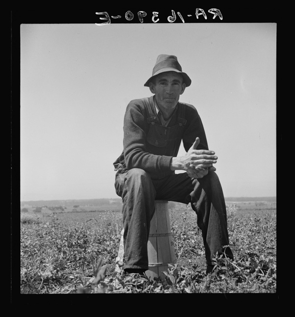 Strawberry grower from Oklahoma near Judsonia forced to join the migratory workers in California for the season because the 1936 drought caused a shortage of plants