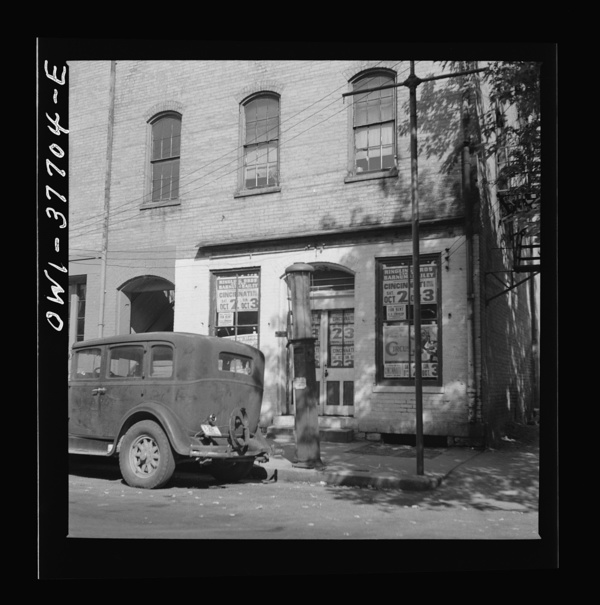 A deserted gas station between Chicago, Illinois and Cincinnati, Ohio as seen from a Greyhound bus