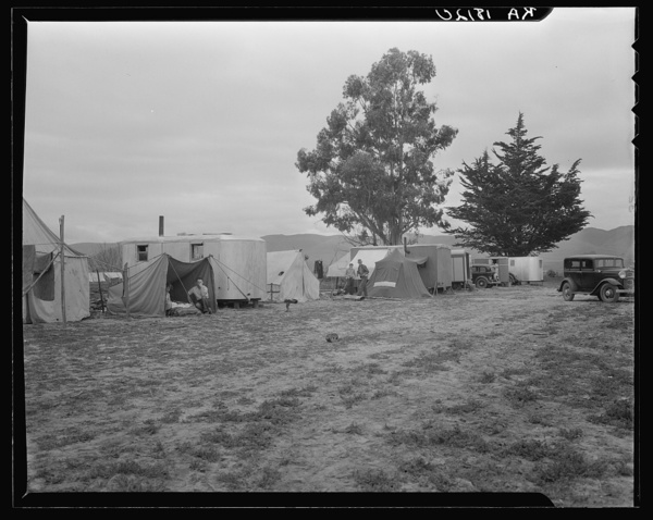 Pea picker's home. The condition of these people warrant resettlement camps for migrant agricultural workers. Nipomo, California