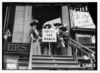 Crowd gathered to hear suffragettes speak at City Hall, mounted policemen, New York