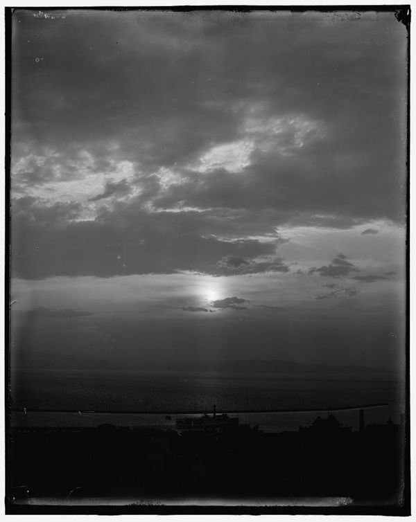 Sunset sky across Lake Champlain, Burlington, Vt.