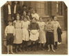 All these are workers in the Cherokee Hosiery Mill, Rome, Ga. Noon, April 10, 1913. The youngest are turners and loopers. Other Hosiery Mills around here employ children of 8 and 9 years. Some of these appear to be as young. Location: Rome, Georgia.