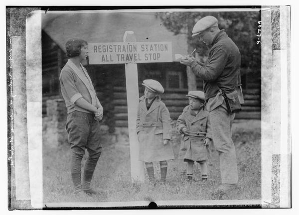 T. Gibbons registering at entrance of Glacier Park