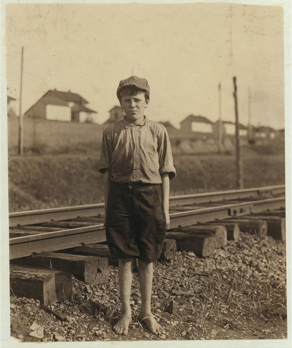 Tarlten ? Gree, Lindale, Ga. Began at 10 years old in Massachusetts Mills. (Is now 13.) Doffs in Spinning Room #2. See also photos in the mill. Location: Lindale, Georgia.