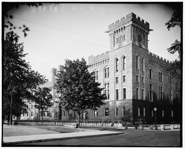 The Academic Bldg., cadets returning from mess, West Point, N.Y.