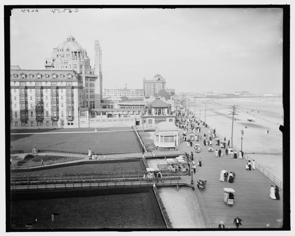 The Board walk and big hotels, Atlantic City, N.J.