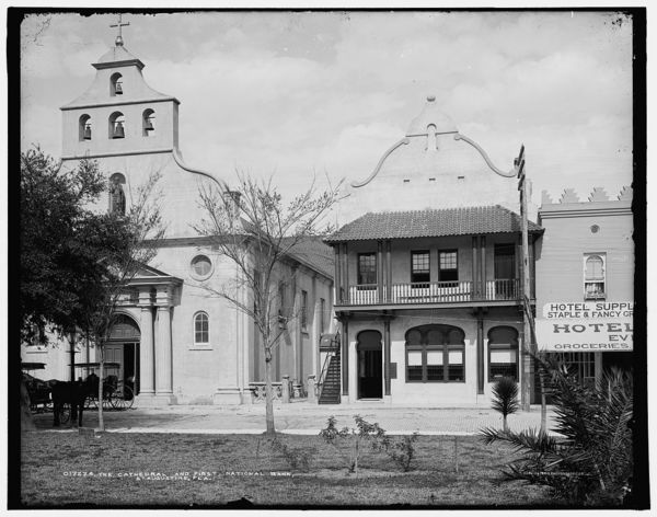 The Cathedral and First National Bank, St. Augustine, Fla.