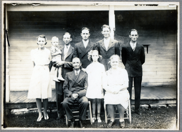 The family of Ezra Cleveland Birdwhistell and Nellie (Phillips) Birdwhistell around 1940. This w...