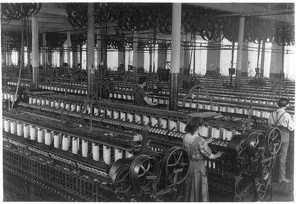 The Flint Cotton Mill, Spinning room. Small girls are employed here but not in evidence this noon. Location: Fall River, Massachusetts