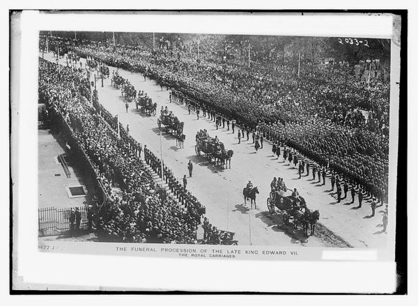 The funeral procession of the Late King Edward VII. the royal carriages.