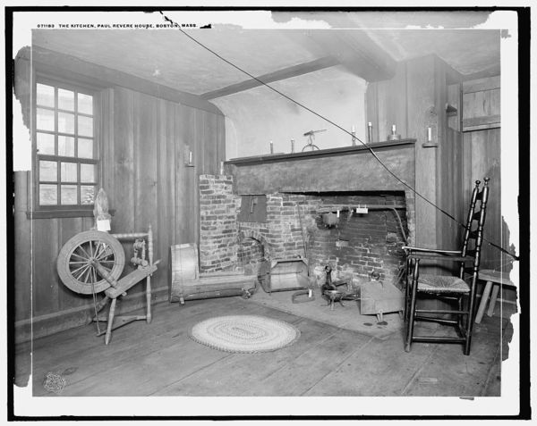 The Fireplace in living room, Paul Revere House, Boston, Mass.