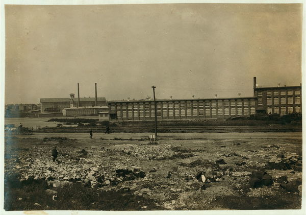 The new and the old - Pilgrim Mill in the foreground - Chase Mill in background. Also dumps near Pleasant St. Location: Fall River, Massachusetts / Lewis W. Hine.